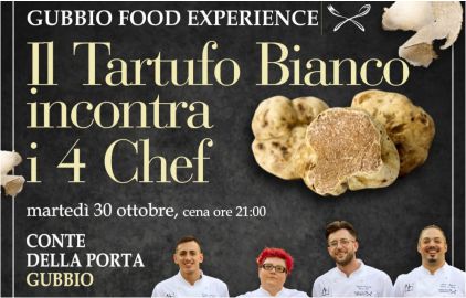 Un importante appuntamento tra cucina e tartufo bianco a Gubbio martedì 30 ottobre. 4 chef eugubini si uniscono e danno vita ad una serata ricca di eccellenza dove sua maestà il tartufo la fa da padrona